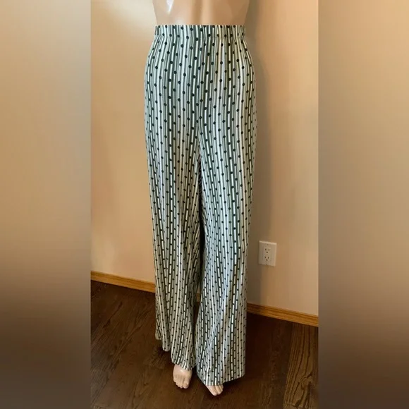 Flowing two tone green casual pants. Black polka dot design. 95% Rayon, 5% Spandex Size 18/20W 35” Waist, 30” Length