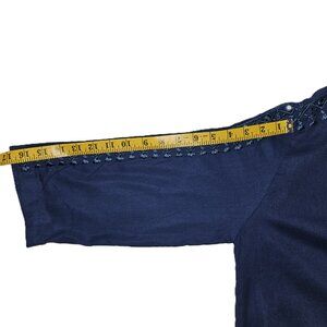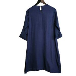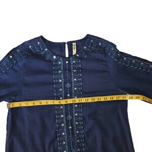 ETHNIC Blue Embroidered 3/4 Sleeve Tunic Short Dress Size Small