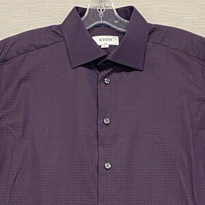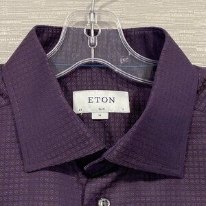 ETON Shirt Mens XL 17 43 Slim Fit Dark Purple Button Front Long Sleeve