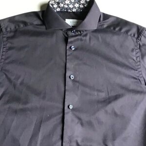 ETON Slim solid black dress cotton shirt Sz 15 3/4 ~40 made in Romania 🇷🇴