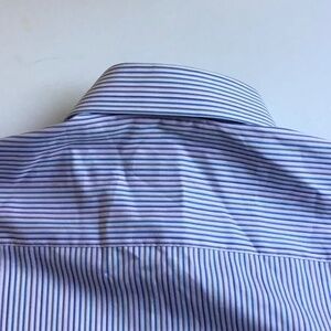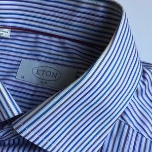 ETON slim light blue & brown pinstriped cotton shirt Sz 15 made in Europe