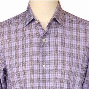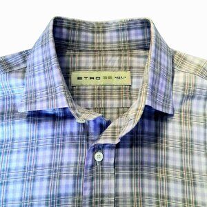 ETRO 39 SZ 40 lightweight Cotton Men's Mauve Plaid Button Up Shirt