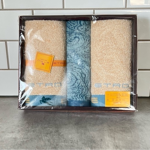 New in box. 100% Cotton. Made in Japan, styled in Italy. 2 pcs of 34 x 75 cm 1 pc of 34 x 35 cm