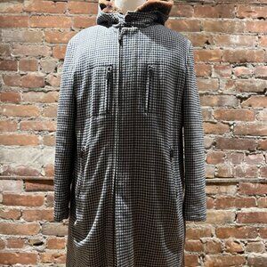 ETRO Milano Wool Blend Houndstooth Coat with Shearling Hood