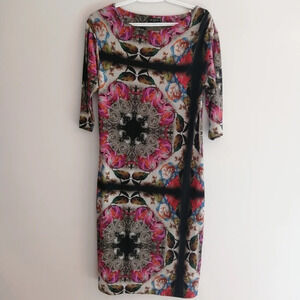 ETRO Wool Blend Floral Paisley Art to Wear 3/4 Sleeve Sheath Dress 44 IT or 8 US
