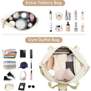 【Dry Wet Separate Duffel Bag】:This duffle bag for women delivers roomy main compartment to store your clothes and items. A zippered waterproof PVC lined pocket for wet clothes or towels and swimsuits. In addition, this travel duffel bag also gives an extra small makeup bag for easy storage.