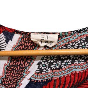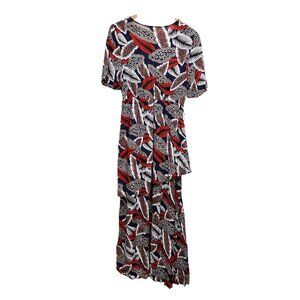 ETWO Red Turquoise Leaf Short Sleeve Maxi Dress Size L