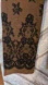PM AI : Stylish brown pants featuring a black lace floral pattern. Perfect for adding elegance to any outfit.