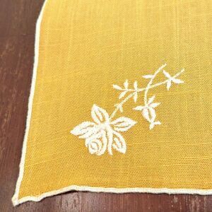 EUC 10.5"x11.25" Antique Linen Handkerchief with Embroidered Hem and Flower