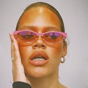 EUC Adam Selman x Le Specs The Crush pink mirror splice lens sunglasses