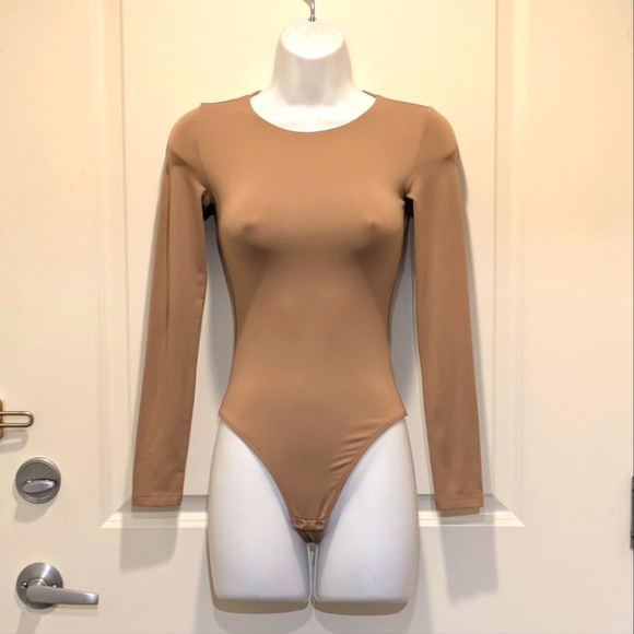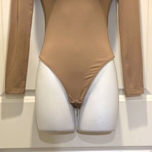 EUC Babaton XS Tan Stretch Long Sleeve Bodysuit