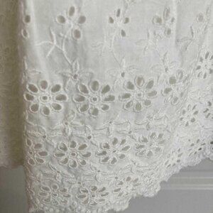 Dress has a solid white cotton top and a cotton eyelet bottom. Cotton diaper cover/bloomers that came with the dress are included.