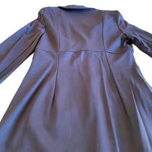 Such a great blazer. Dark brown. Tapered at waist machine washable. Has some stretch so you never feel uncomfortable. So easy to wear! You’ll love it.