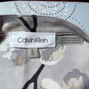 EUC Calvin Klein blouse black grey white abstract floral pattern Size L