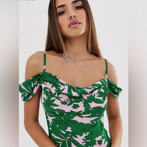 EUC Club L Tropical Print Bardot Cowl Neck Maxi Dress