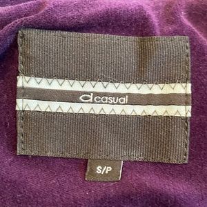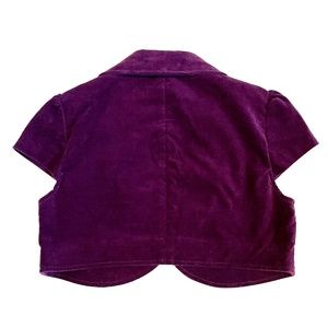 Excellent used condition D-Casual by Dynamite plum purple velour short sleeve shrug with purple lining. Only worn once. Has hook-and-eye clasp at front.