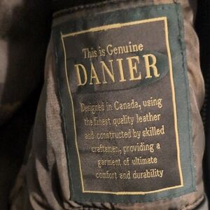 This Danier coat combines a sleek black leather finish with a classic military field design, offering a sophisticated and timeless look. The mid-length style and folded collar add a touch of elegance, making it a versatile choice for various occasions. Crafted with attention to detail, this coat ensures both style and durability.