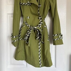 EUC Forever 21 Twisted brand (bought ages ago when quality was still good!) grass green raincoat with sweet plaid and mini puff sleeve details. This is a statement piece and so fun!