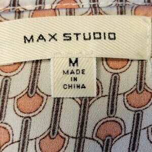 This blouse is a boho dream. The faux wrap front is great for active days as you don't have to worry about the front coming open. The blouse has an elastic bottom to keep it in place.The sleeves have a romatic ruffle opening as well as a ruffle across the shoulders. A great blouse easy to dress up or down. The main colours are cream and a dark blush wich makes it easy to mix and match with items already in your closet.