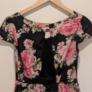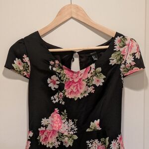 EUC Forever 21 S Backless Keyhole Black and Pink Floral A-Line Dress
