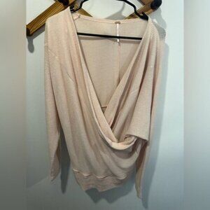 EUC- Free People Women's Cozy With You Faux Wrap Sweater Ribbed Bush Pink Medium