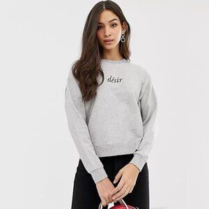 EUC French Connection grey graphic print “désir” cotton crew neck sweatshirt