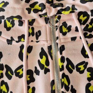 EUC Genetic Apparel pink and white animal print colour block hooded cotton blend sweatshirt with half zipper