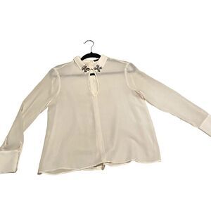 EUC Gorgeous Zara Sheer Blouse with Bejewelled Collar