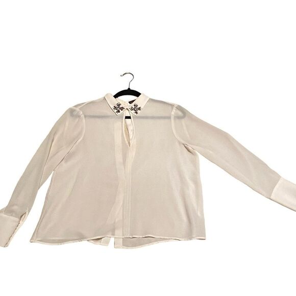 EUC Gorgeous Zara Sheer Blouse with Bejewelled Collar