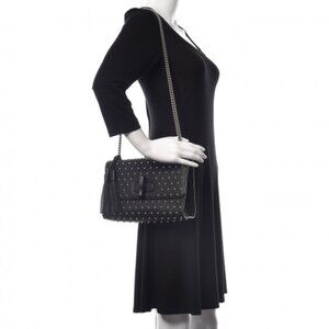Authentic Gucci Calfskin Studded Medium Miss Bamboo Shoulder Bag Black