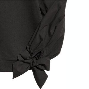 EUC H&M black cotton blend sweatshirt with contrast statement sleeves with self-tie bow detail