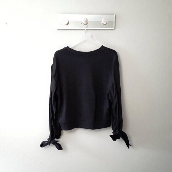 EUC H&M black cotton blend sweatshirt with contrast statement sleeves with self-tie bow detail