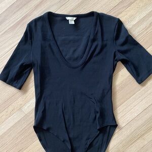 EUC H&M black low cut Bodysuit with 3/4 sleeves
