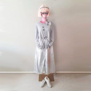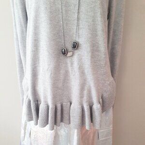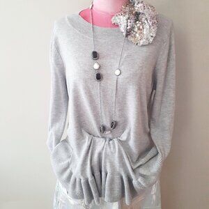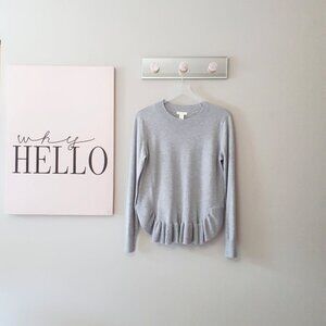 EUC H&M light grey wool blend sweater with curved ruffle hem, S