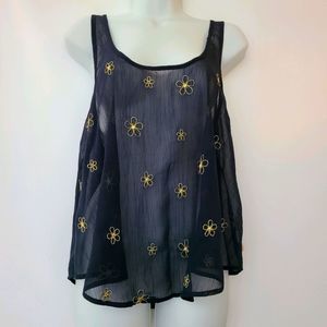 EUC Hollister Dark Blue Gold Flowers Sheer Tank M