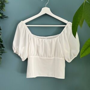 Beautiful ICONE par simons white blouse with balloon sleeves and vintage lace details. Like new condition only worn once. Women's size XS and white.