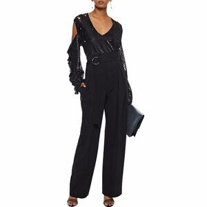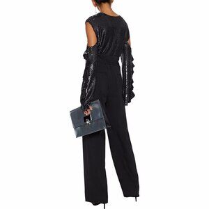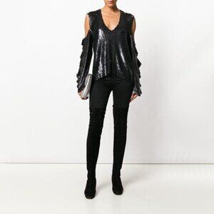 EUC IRO Waleast black and silver double faced all over sequin cold shoulder ruffle sleeve top