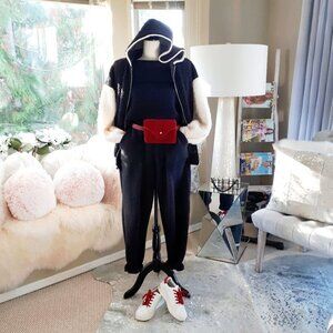 EUC Icone Simons black & white faux fur soft-feel Varsity-inspired zip up sweatshirt