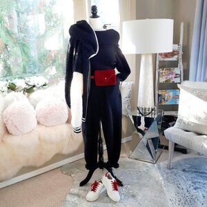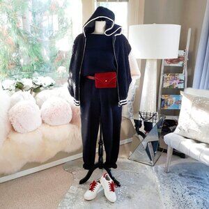 EUC Icone Simons black & white faux fur soft-feel Varsity-inspired zip up sweatshirt
