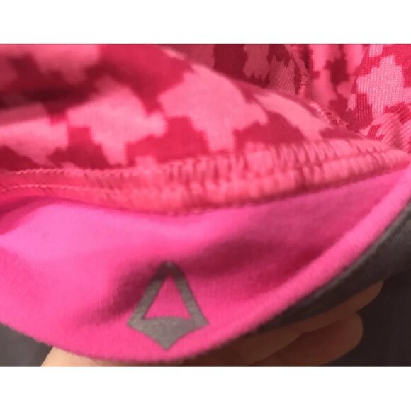 NOTE: the only real flaws are a missing rubber ivivva logo on zipper pull string and small amount of missing paint on the metal. Small amount of pilling on stitching. Everything else is in excellent condition! Still perfectly functional and so beautiful! High quality, heavy material. Thumb holes, hood has pony tail hole. Reversible! one side is grey, one side has pink design. Zippered pockets on pink side, un-zippered pockets on grey side.