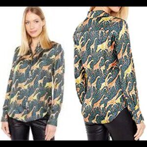 EUC J Crew Collection Silk Giraffe Print Matching Cropped Pants & Shirt Set 6 S