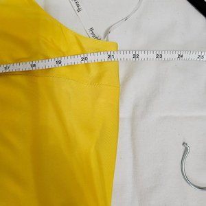This piece is my own personal owned dress. I wore all of 3 times. Very comfortable, sleeveless dress in yellow with a paisley type print in black, blue, pink, peach. Fully lined with zip down the back.