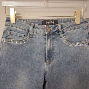 EUC Joseph Ribkoff light blue jeans with bejeweled pockets / hems, 6