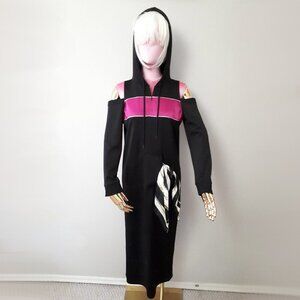 EUC Juna & Hope black and purple cold shoulder accent track dress with hood, S