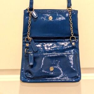 EUC Kenneth Cole Reaction Adjustable Blue Patent PVC Fold Over Purse