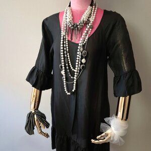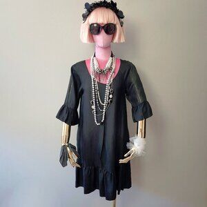 EUC Kensie black silk dress with bell sleeves and ruffle hem, S