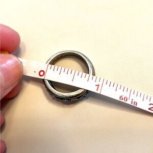Elegant silver ring featuring intricate floral designs with shimmering blue accents. Perfect for adding a touch of sophistication to any outfit.