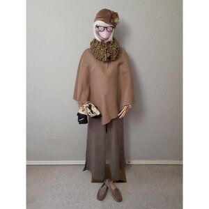 EUC Linea Domani tan soft feel poncho with statement collar, L