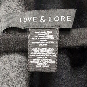 Chic poncho by Love & Lore. Features a stylish black and gray design. Ideal for layering. Worn once