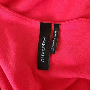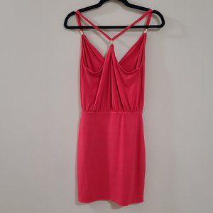 EUC MARCIANO Coral T-Back Summer Mini Dress w/ Gold Accent Bands and V Neckline